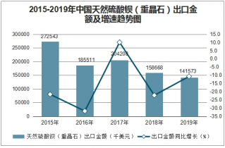 2015-2019年中國(guó)天然硫酸鋇(重晶石)出口金額及增速趨勢(shì)圖