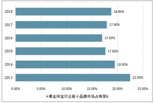 2013-2018年黃金珠寶行業(yè)前十品牌市場(chǎng)占有率情況
