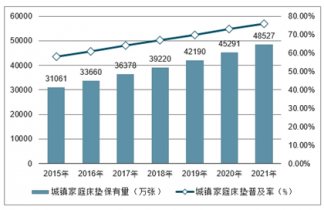 城鎮(zhèn)家庭床墊保有量及城鎮(zhèn)家庭床墊普及率、