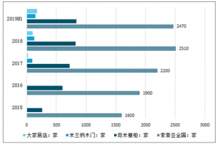索菲亞門店數(shù)量變化情況(家)