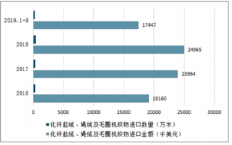 2016-2019年9月中國化纖起絨、繩絨及毛圈機織物進口數量及進口金額情況