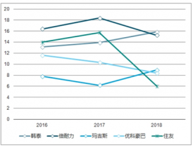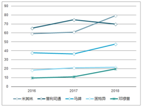2016-2018全球前10輪胎品牌價值價值趨勢-TOP5
