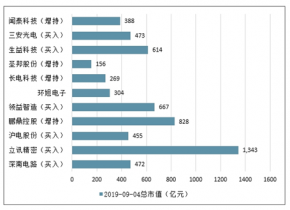 2019-09-04電子行業(yè)重點(diǎn)公司總市值(億元)