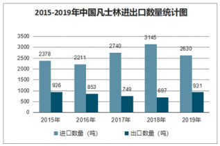 2015-2019年中國凡士林進出口數(shù)量統(tǒng)計圖