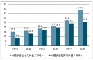 2013-2018年中國多晶硅產(chǎn)量及產(chǎn)能規(guī)模