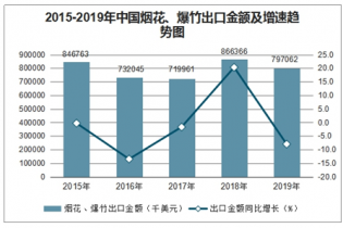 圖表2015-2019年中國煙花爆竹出口金額情況表