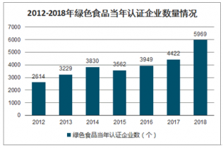 2012年,全國(guó)綠色食品認(rèn)證企業(yè)數(shù)量為2614家,到2018年已經(jīng)增長(zhǎng)到5969家。特別是2018年綠色食品認(rèn)證企業(yè)數(shù)量有一個(gè)大幅度提升。僅2018年獲得認(rèn)證的企業(yè)就增加了1547家。
