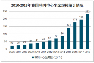 入局企業的不斷增多,以及呼叫中心需求和投資的上升,使呼叫中心坐席規模發展迅速。近年來,我國呼叫中心坐席規模保持了年復合15%以上的增速增長。2010年我國呼叫中心坐席規模已達64萬個,截止至2018年我國呼叫中心坐席規模上升至232萬個,隨著更多企業加入呼叫中心建設,呼叫中心坐席規模將保持持續增長。