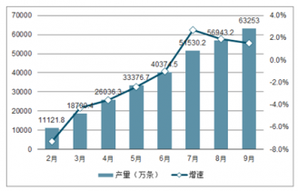 2019年1-9月全國橡膠輪胎產(chǎn)量及增速