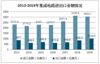 集成電路進出口金額方面,2019年1-12月集成電路累計進口集成電路金額為3050.1億美元,較2018年有所下降。2019年1-12月累計出口集成電路金額為1016.5億美元,同比增長20.1%.
