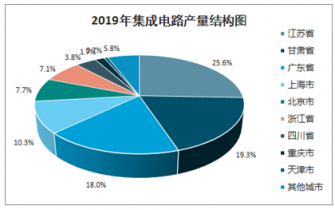 2019年江蘇省集成電路產量排名第.一,累計產量占比25.6%;其次為廣東省產量占比19.3%。廣東省產量占比18.0%;上海市產量占比為10.3%。