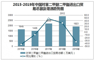 2015-2019年中國對苯二甲酸二甲酯進出口貿易總額及增速趨勢圖