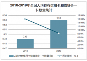 2019年全國人均持有信用卡和借貸合一卡0.53張,同比增長8.36%。