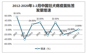 2012-2020年1-2月中國狂犬病疫苗批簽發(fā)量增速