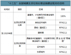 “十三五”全國城鎮(zhèn)生活垃圾處理設(shè)施建設(shè)規(guī)劃總目標(biāo)