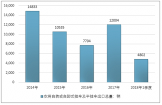 2016年我國農(nóng)用自裝或自卸式掛車及半掛車出口總量7704輛 ,2017年出口總量12004輛 ;2019年1季度出口總量4802輛 。