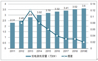 2011-2019年水電總裝機(jī)容量及增速預(yù)測(cè)