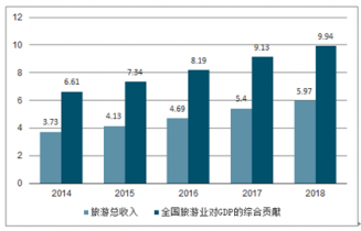2014-2018年中國旅游總收入及對國內GDP綜合貢獻情況