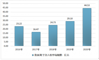 2016-2020年我國離子注入機市場規模走勢圖