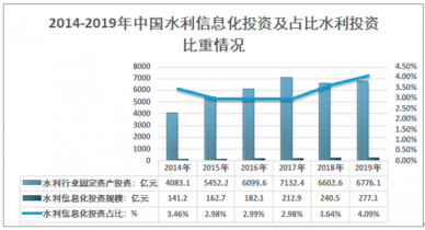 2014-2019年中國水利信息化投資及占比水利投資比重情況