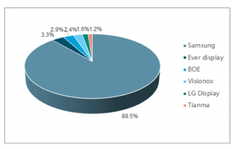2019年三季度三星仍占據(jù)全球AMOLED市場88.5%的市場份額