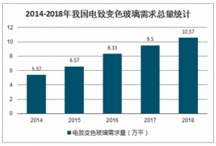 2014-2018年我國電致變色玻璃需求總量統(tǒng)計