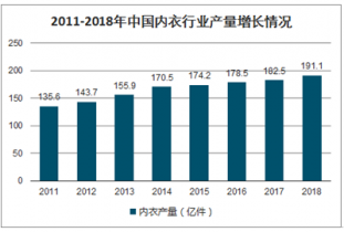 2011-2018年中國內(nèi)衣行業(yè)產(chǎn)量增長情況