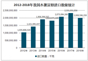 2012-2018年我國木薯淀粉進(jìn)口數(shù)量統(tǒng)計