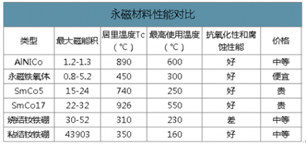 永磁材料性能對(duì)比
