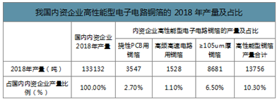 我國內資企業高性能型電子電路銅箔的2018年產量及占比