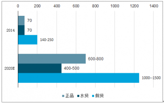目前我國玻尿酸填充行業(yè)還不夠規(guī)范,市場上流通著大量的假貨水貨,2014年正品、水貨和假貨市場銷量占比分別約25%、25%和50%。隨著市場發(fā)展趨于成熟,正品市場占比有望擴(kuò)大,預(yù)計(jì)2020年占比達(dá)30%。