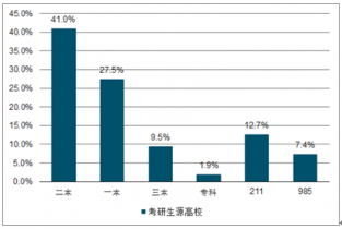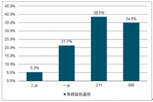生源和報考存在“八-七”現象,千軍萬馬過獨木橋:根據 “2019 年考研初試難度調查”的數據(有效問卷 9254 份), 80%的考生來自非 985、 211 高校, 70%的考生目標是 985、 211 高校,形成了較為典型的“金字塔”考試升級現象,大部分的考生來自于普通院校,希望通過激烈的公平考試去競爭“稀缺”的“名牌”高校。