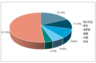 截至2018年底,全球黃金儲量達(dá)5.4萬噸,澳大利亞、南非、俄羅斯、美國和中國是全球黃金儲量前五大國家,其中澳大利亞2018年黃金儲量約9800噸,是世界黃金儲量最大的國家,占比達(dá)18.1%,其次是南非和俄羅斯,分別占據(jù)全球11.1%、9.8%的比重,中國2018年占比3.7%。