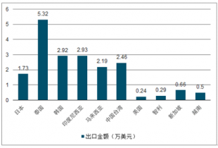 圖表2019年我國膨潤土出口國家及地區(qū)分析