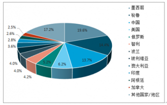 圖表:2019年世界前十大白銀生產(chǎn)國