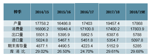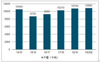 2019/2020新榨季,白糖進(jìn)入減產(chǎn)周期,全球目前已經(jīng)有巴西、泰國、歐洲開始減產(chǎn)。國際糖業(yè)組織(ISO)預(yù)估2018/19榨季制糖期全球食糖供應(yīng)過剩量為64.10萬噸,低于此前預(yù)估的217萬噸。全球2018/19年度糖產(chǎn)量預(yù)計在1.7868億噸,低于之前預(yù)估的1.8049億噸。2019/20榨季全球白糖產(chǎn)量缺口193.4萬噸。