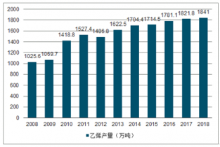 2008-2018年我國乙烯產(chǎn)量走勢