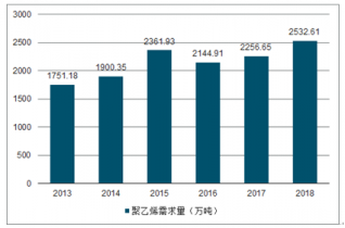 2013-2018年中國(guó)聚乙烯需求量走勢(shì)圖