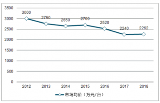 2012-2018年中國盾構(gòu)機行業(yè)均價走勢