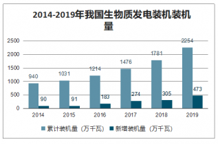 2014-2019年我國生物質(zhì)發(fā)電裝機(jī)裝機(jī)量