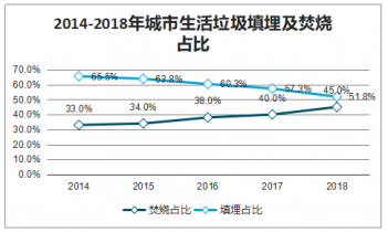 2014-2018年城市生活垃圾填埋及焚燒占比