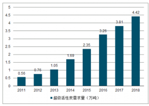 近年來,國內(nèi)超級活性炭企業(yè)產(chǎn)能有所擴張,生產(chǎn)技術(shù)也逐步成熟,國內(nèi)超級活性炭產(chǎn)量迅速增長。2018年我國超級活性炭產(chǎn)量達到4.31萬噸,相比于2011年的0.28萬噸增長了15倍。