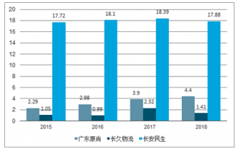 2015-2018年部分企業汽車零部件物流業務收入(億元)