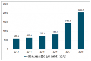 2018年我國DRAM存儲器行業(yè)銷售市場規(guī)模約2038.9億元,同比2017年的1439.2億元增長了41.67%。