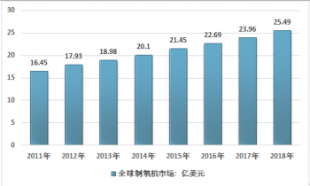 1903年,世界上第.一臺工業(yè)性制氧機在德國誕生,開啟了全球制氧機產業(yè)的篇章,在家用等便攜式制氧機產品需求快速增長的推動下,近年來全球制氧機產業(yè)規(guī)模維持增長態(tài)勢,2018年全球制氧機產業(yè)規(guī)模達到25.49億美元。