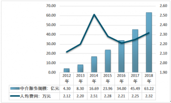 近年來(lái),我國(guó)海外醫(yī)療中介服務(wù)市場(chǎng)發(fā)展迅速,市場(chǎng)規(guī)模成倍數(shù)增長(zhǎng),2012年我國(guó)海外醫(yī)療中介服務(wù)市場(chǎng)規(guī)模為4.30億元,2018年增長(zhǎng)至63.22億元。