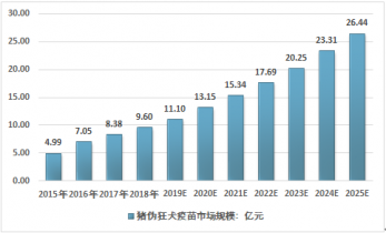 2015-2025年我國豬偽狂犬疫苗市場規(guī)模統(tǒng)計(jì)及預(yù)測圖