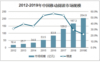 2012-2019年中國移動閱讀市場規模