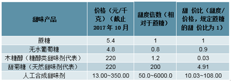 人工合成甜味劑甜價(jià)比具備明顯優(yōu)勢(shì)