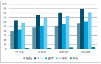 假設(shè)2018-2020年住宅銷(xiāo)售面積增長(zhǎng)率分別為3.18%、-5.30%、-4.10%。在不考慮長(zhǎng)租公寓帶來(lái)的增量前提下,根據(jù)住建部十三五規(guī)劃中提出的計(jì)劃到2020年全裝修比例達(dá)到30%來(lái)計(jì)算,未來(lái) 2018-2020 年全裝修比例預(yù)測(cè)值設(shè)定為 23%、26%、30%。預(yù)計(jì)2020年我國(guó)精裝房市場(chǎng)規(guī)模達(dá)400萬(wàn)套。假定一定的出廠價(jià)和配置率,推算到2020年,櫥柜、木門(mén)、瓷磚、木地板精裝房市場(chǎng)規(guī)模可分別達(dá)到 114億、179億、122 億、163 億元,CAGR 約為11%;衣柜精裝房市場(chǎng)規(guī)模達(dá)到10億元,CAGR約為50%。